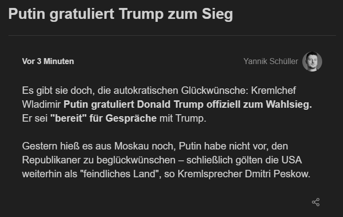. Er ruft keine Parolen auf im Gegensatz zu den Usern hier. Der Ukraine Krieg ist ein interner Konflikt und wäre schon längst beendet und die Ukraine würde auch weiter bestehen, wenn sich unsere NATO da nicht einmischen würde. Das weiß auch jeder. Aber lieber irgendwelche Hirngespinste verfolgen.Andrea6 schrieb:Wenn er den Geldhahn und Waffenlieferungen abreht, dann würde es schnell gehen.
