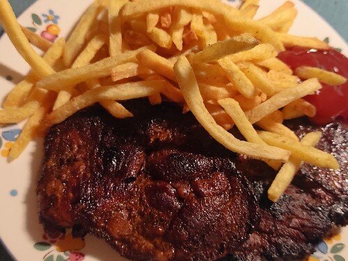 Bin heute Abend Strohwitwer - Entrecote auf den Grill, nur Salz und Pfeffer ("Berliner Schnauze" von 030BBQ) und "Kiez-Butter" ebenfalls von 030BBQ dazu.
