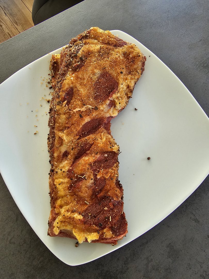 Heute gab es Pferderibs. Hab insgesamt knapp 8 KG und heute einen Testballon gestartet. Vom Fett pariert, gerubt und nach 3-2-1 bei 120 Grad gesmoket. Es war gut aber grundsätzlich geht nix über Schweinerippchen
