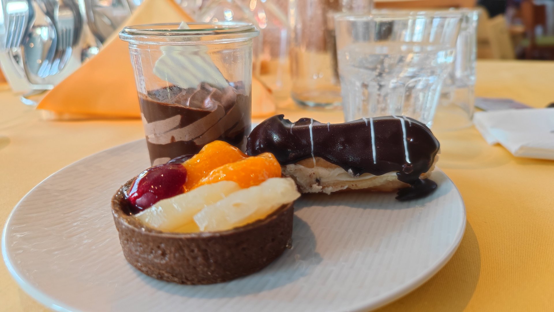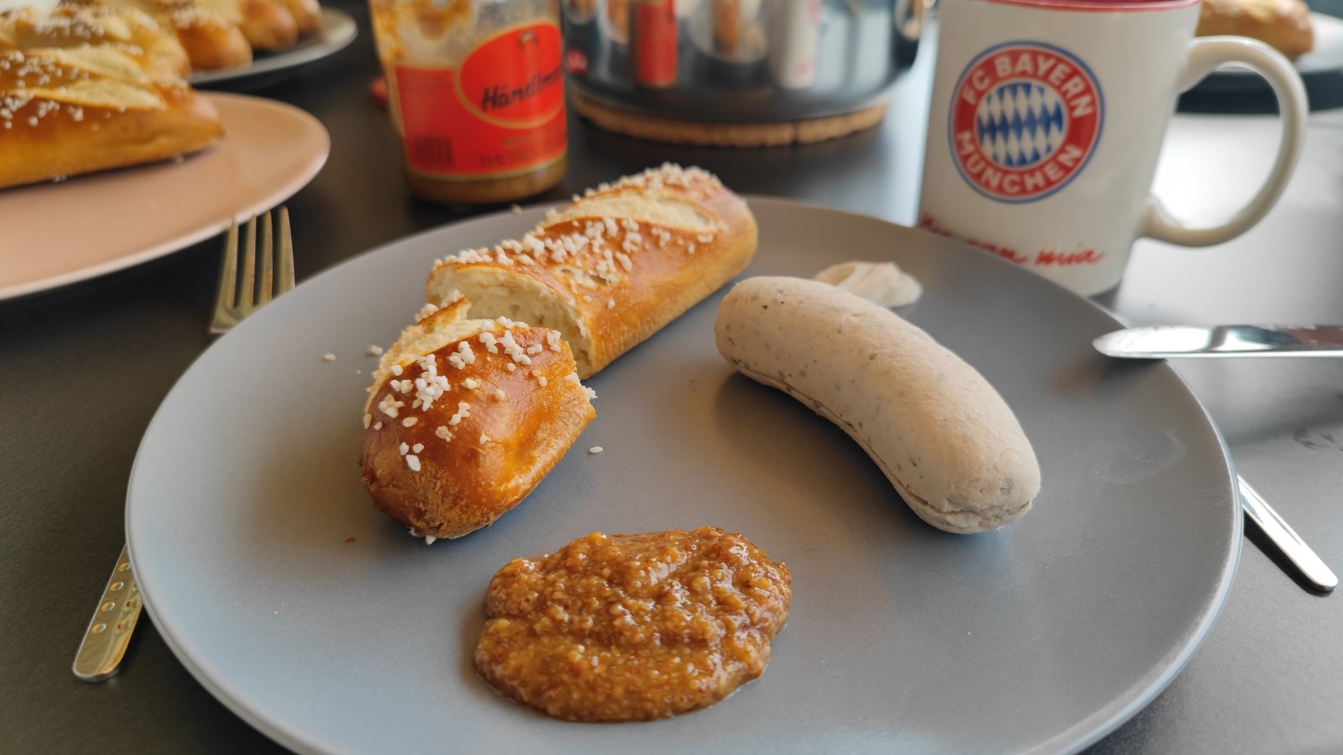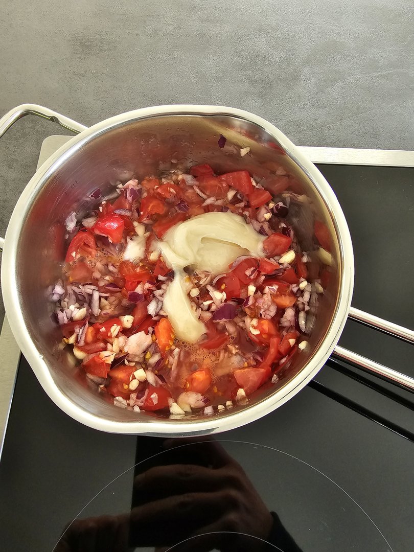 Dazu süß-scharfen Dip, hier Ketchup und Senf.