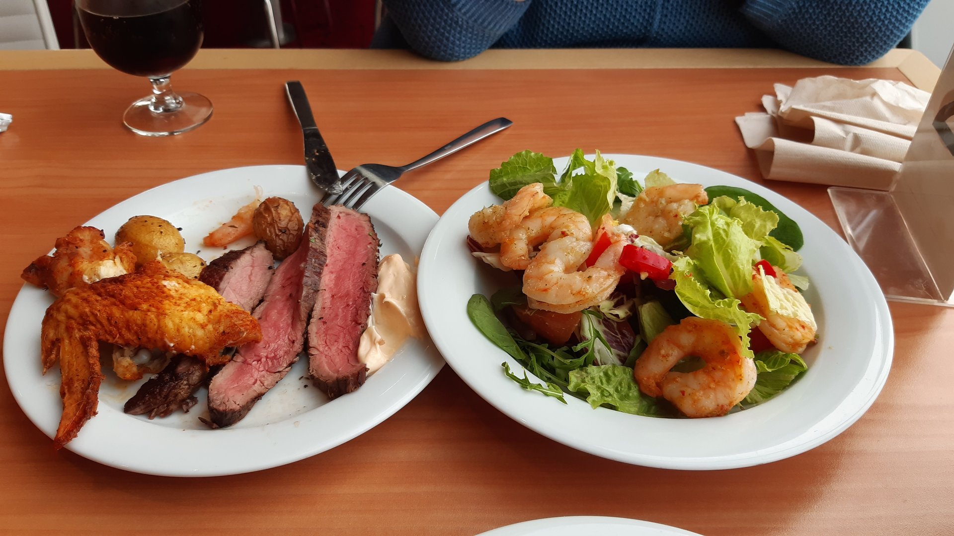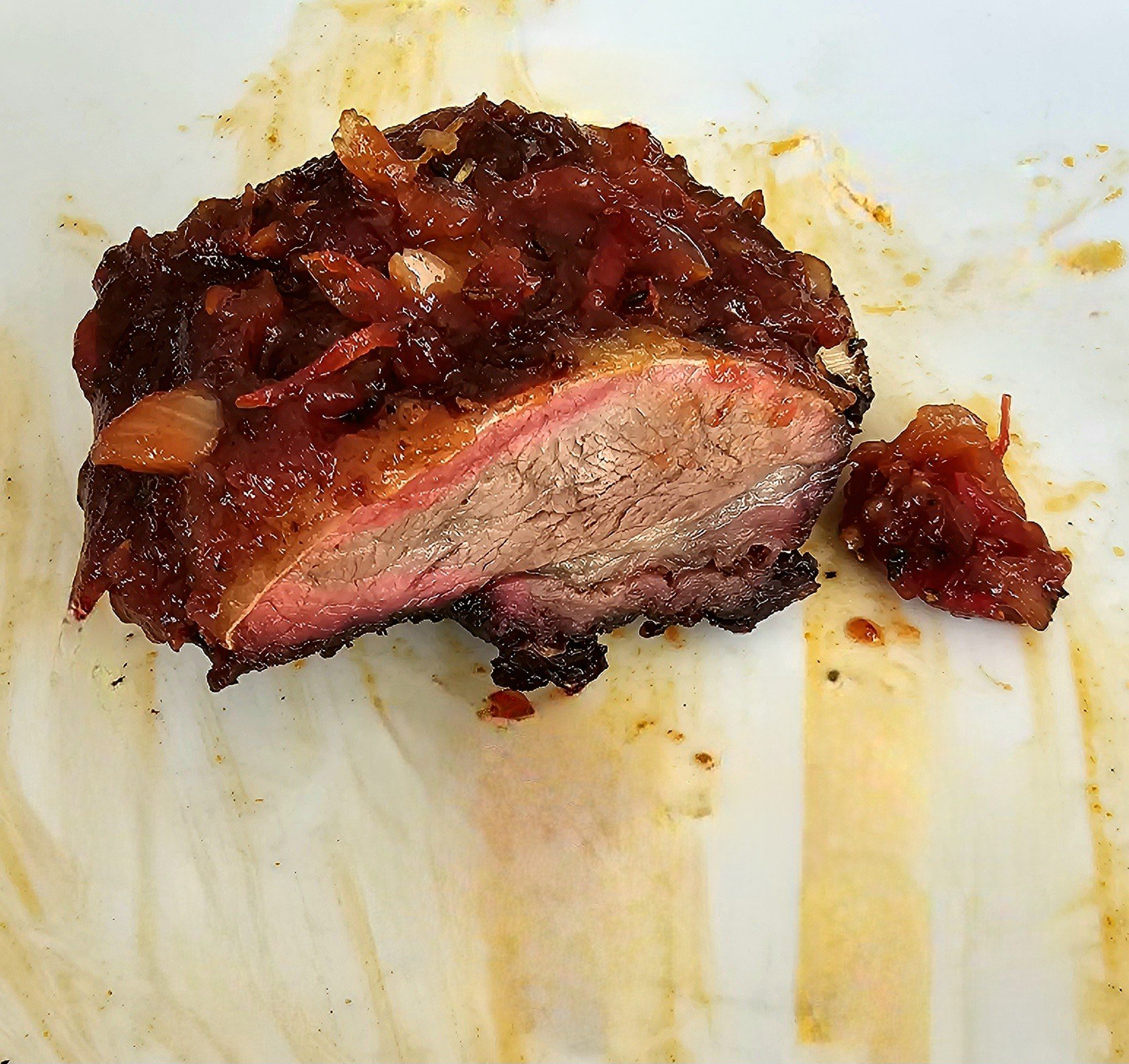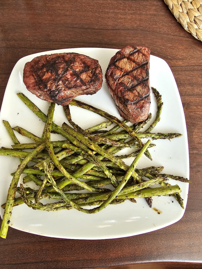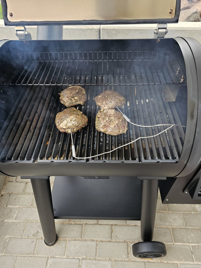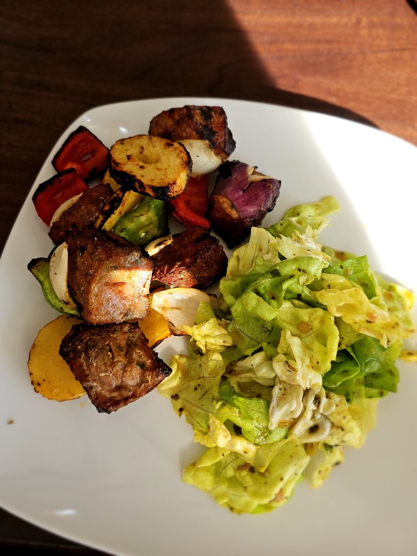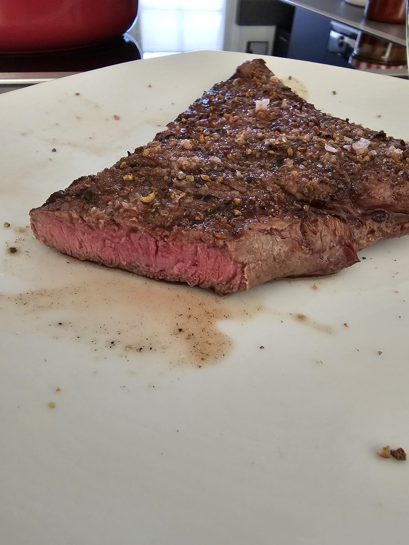 Heute gab es gesmokete Lammhüfte mit Salat. Das Lamm mit Olivenöl, Balsamico, Kräutern und Knoblauch mariniert. Dann bei 107 Grad bis 54 Grad Kerntemperatur auf den Smoker und anschließend scharf angegrillt. Ich werde Lamm wohl nur noch so essen...