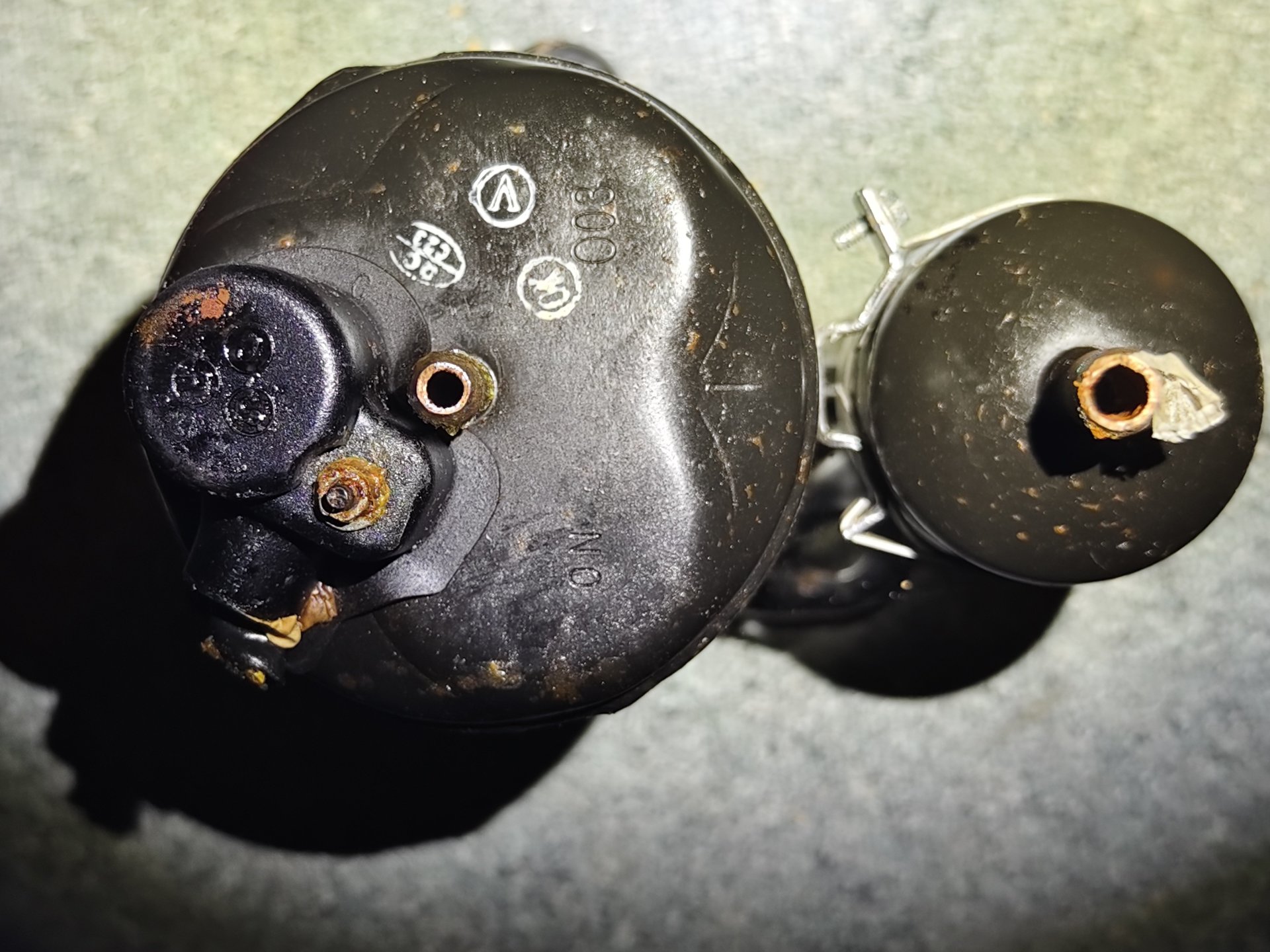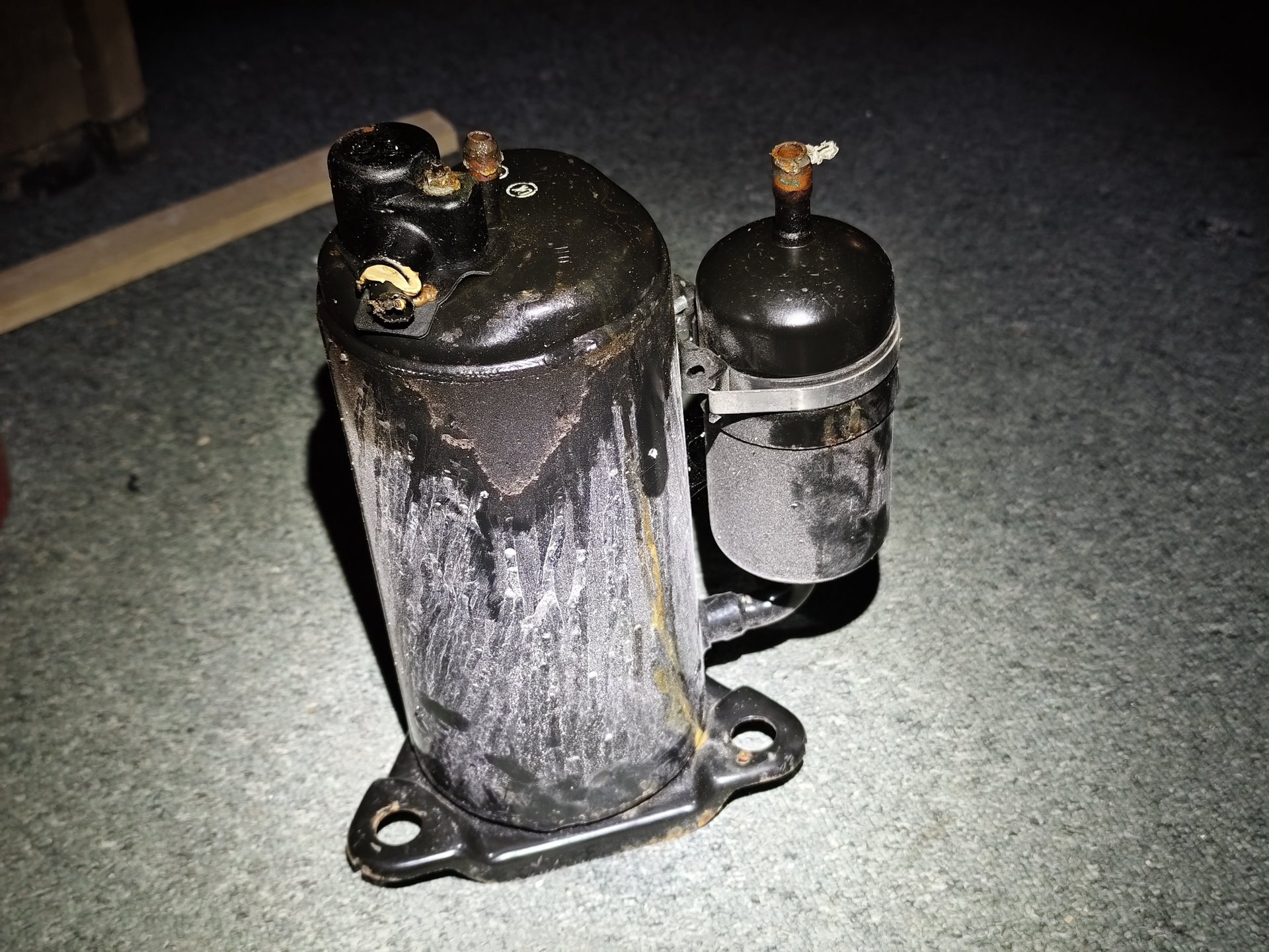 Habe heute den Keller von Bekannten ausgemistet. Beide waren schon alt und sind kurz hintereinander verstorben. Dabei bin ich auf ein seltsames schweres Objekt gestoßen, das kopfüber in einem alten Farbeimer - natürlich ohne Farbe - stand. Nach meiner Recherche handelt es sich um einen Klimakompressor.