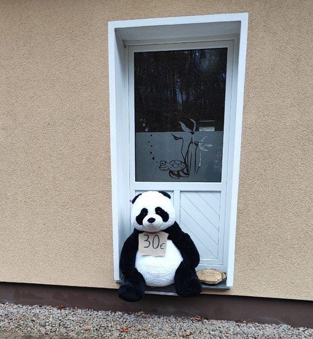 ) einen 1m großen Stoffpandabären.