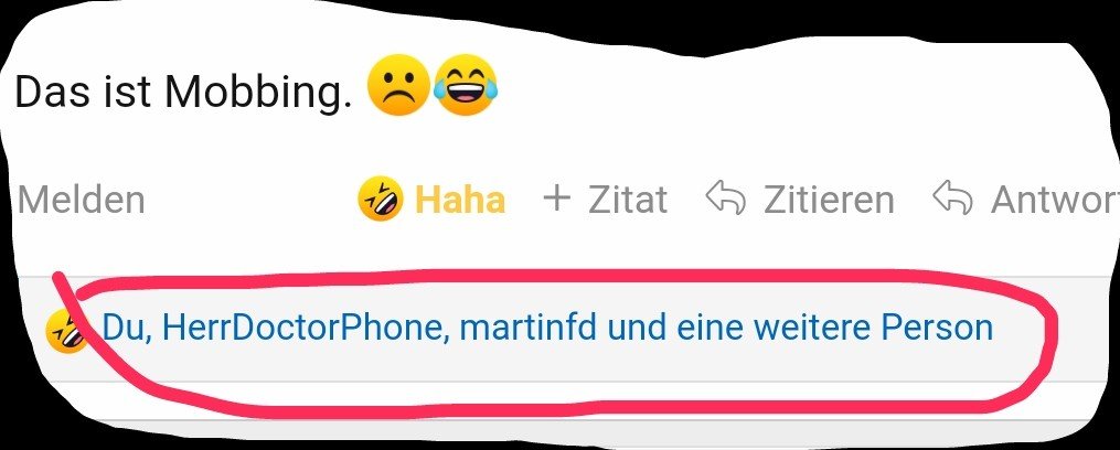 4 von 5 Usern finden Mobbing vollkommen ok.RoliGlitzer schrieb:Das ist Mobbing. ☹![]()