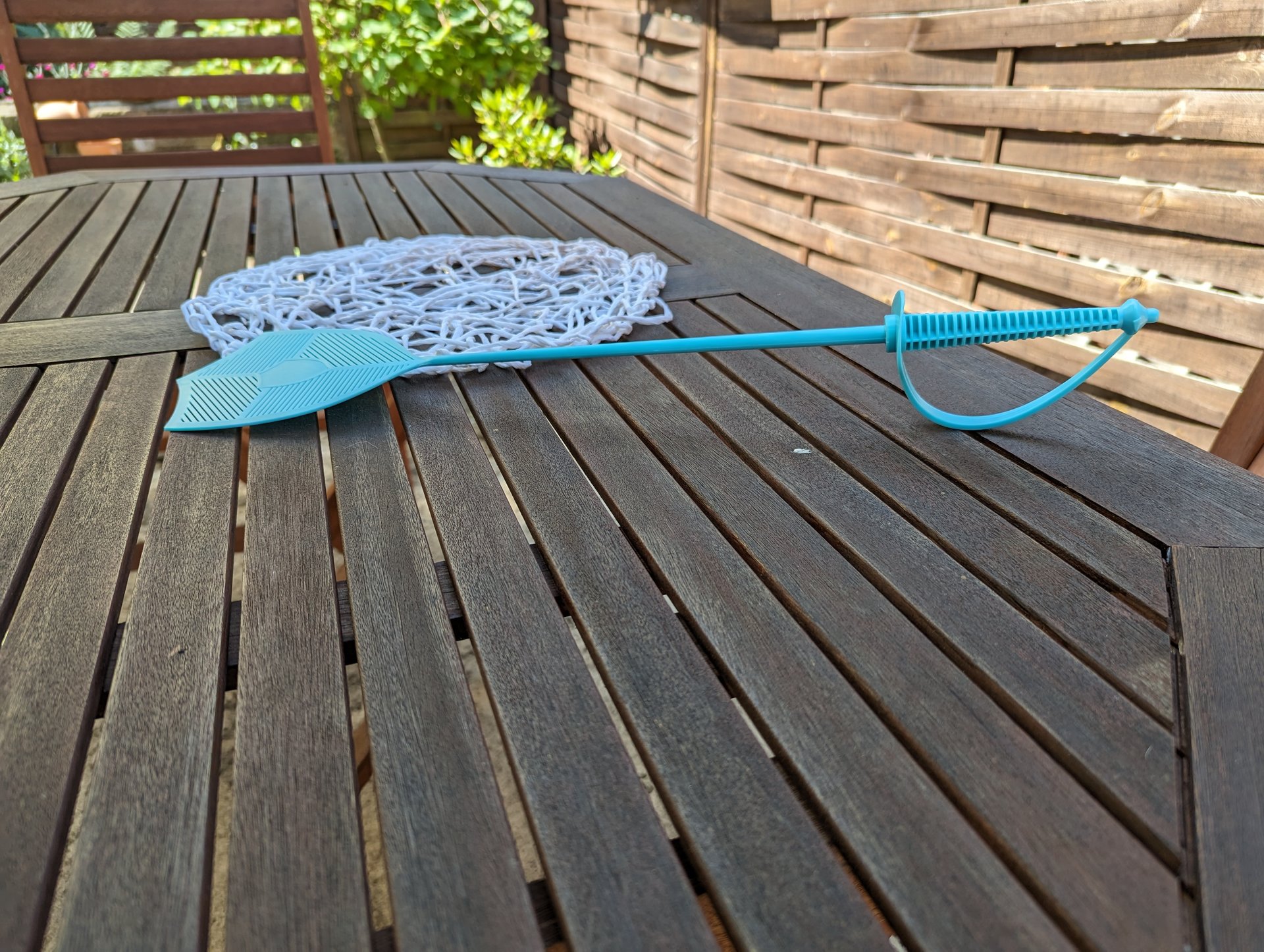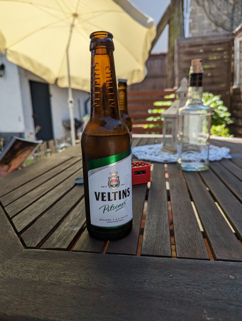 Der Tisch könnte auch mal wieder mit Holzschutz bearbeitet werden...