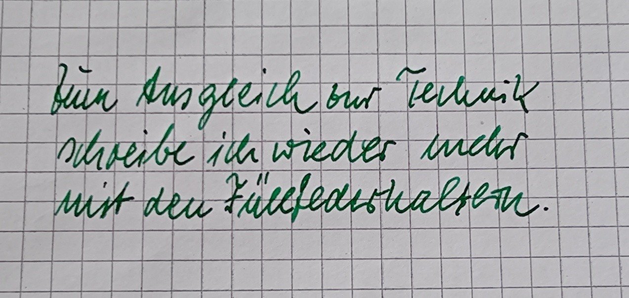 Sieht aber auch nicht viel besser aus...Monteverde schrieb:In der letzten Zeit fiel mir auf, dass meine Schrift sich etwas verschlechtert hat. Fast alles wird mit der Technik gemacht und man wird bequem. Darum werde ich jetzt vermehrt wieder meine Lieblingsschreibgeräte verwenden und ich muss sagen, es macht wieder richtig Freude. Die verschiedenen Federn und die schönen Tinten geben in das Schreiben wieder Leben.Anhang anzeigen 1199185
