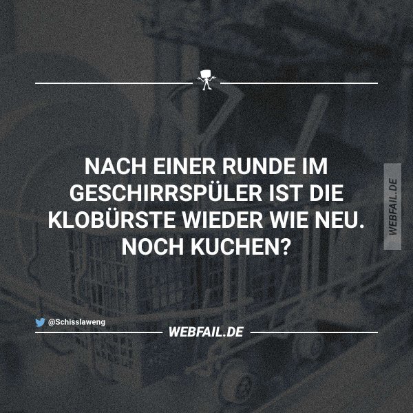 Ich habe gerade Angst, die nächste Essenseinladung anzunehmen. Hatte den Geschirrspüler aus vorigen Beitrag weitergeleitet, und bekam ein 'klar, das Katzenklo kommt da doch auch rein' zurück...