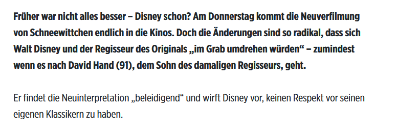 Aber man wollte den Namen Snow White ja nutzen, weil den ja schon alle kennen. Der PR Trubel der nun entstanden ist freut Disney um so mehr, kostenlose Aufmerksamkeit erregt. $$$$