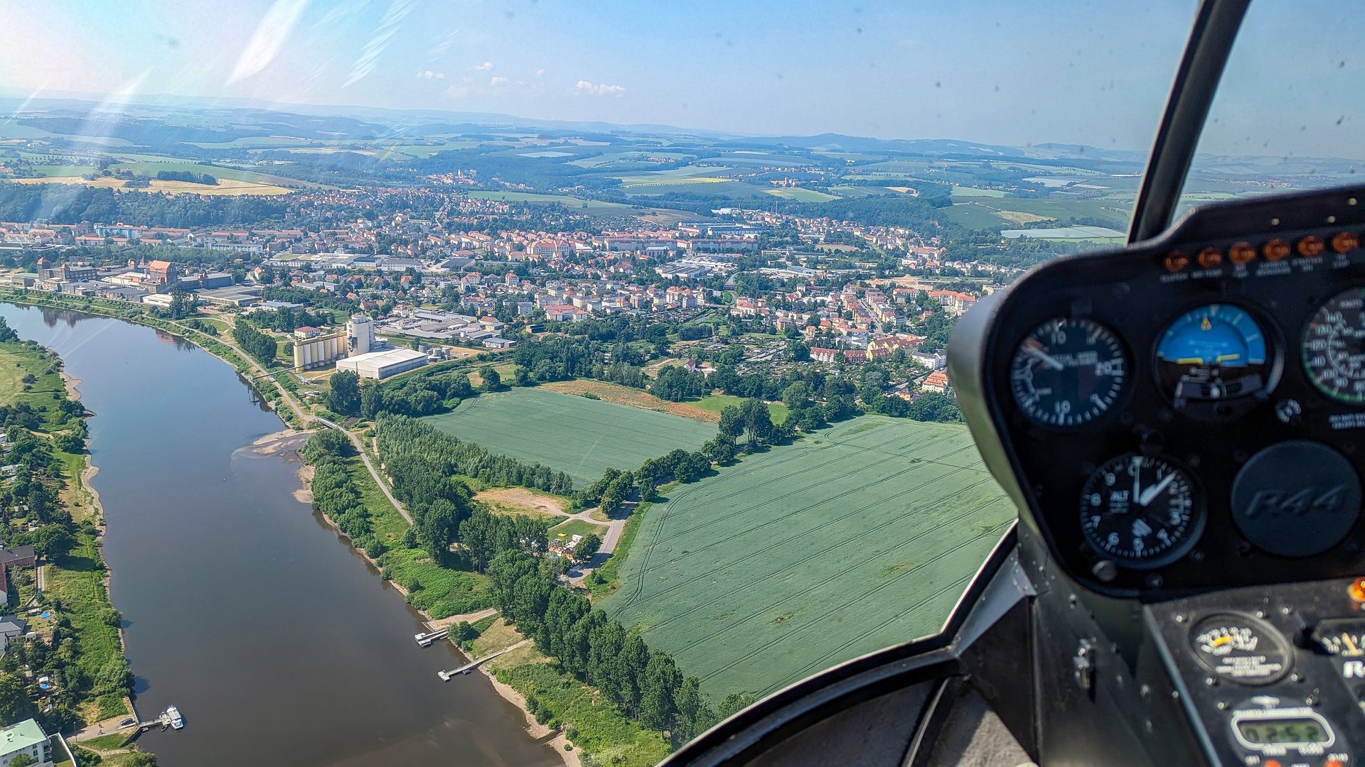 Mir war bis dahin gar nicht bewußt, dass so ein kleiner Hubschrauber 200km/h Tempo machen kann. Leider war es etwas trüb, ich habe versucht den Dunst etwas zu entfernen.