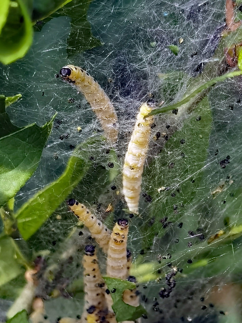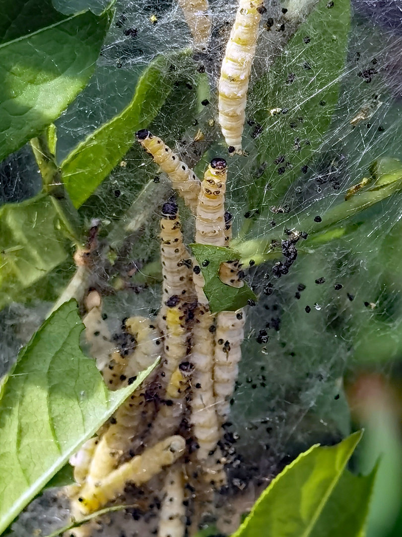 Das sind Gespinstmotten.Platsch4567 schrieb:unbekannte Raupen