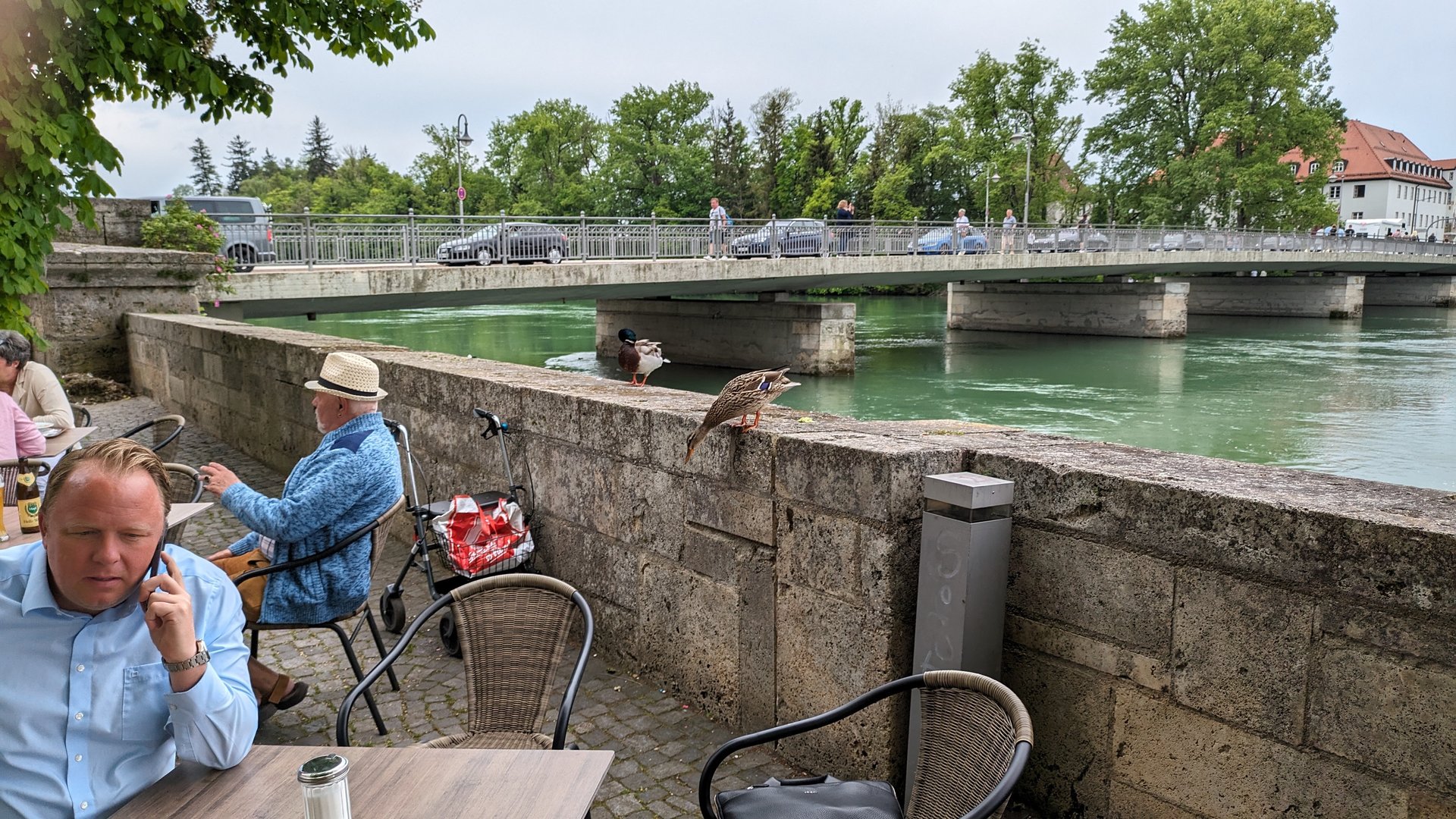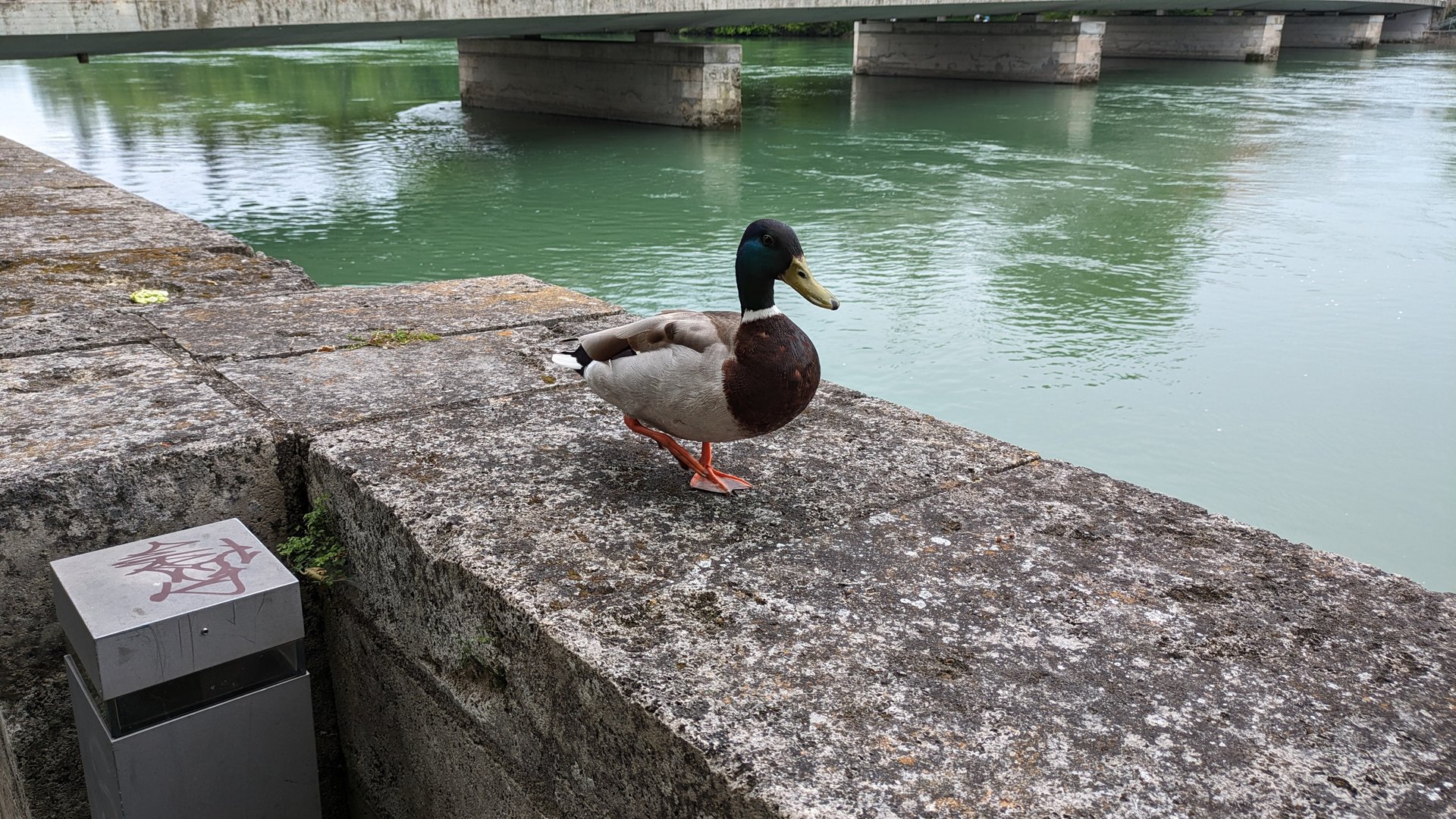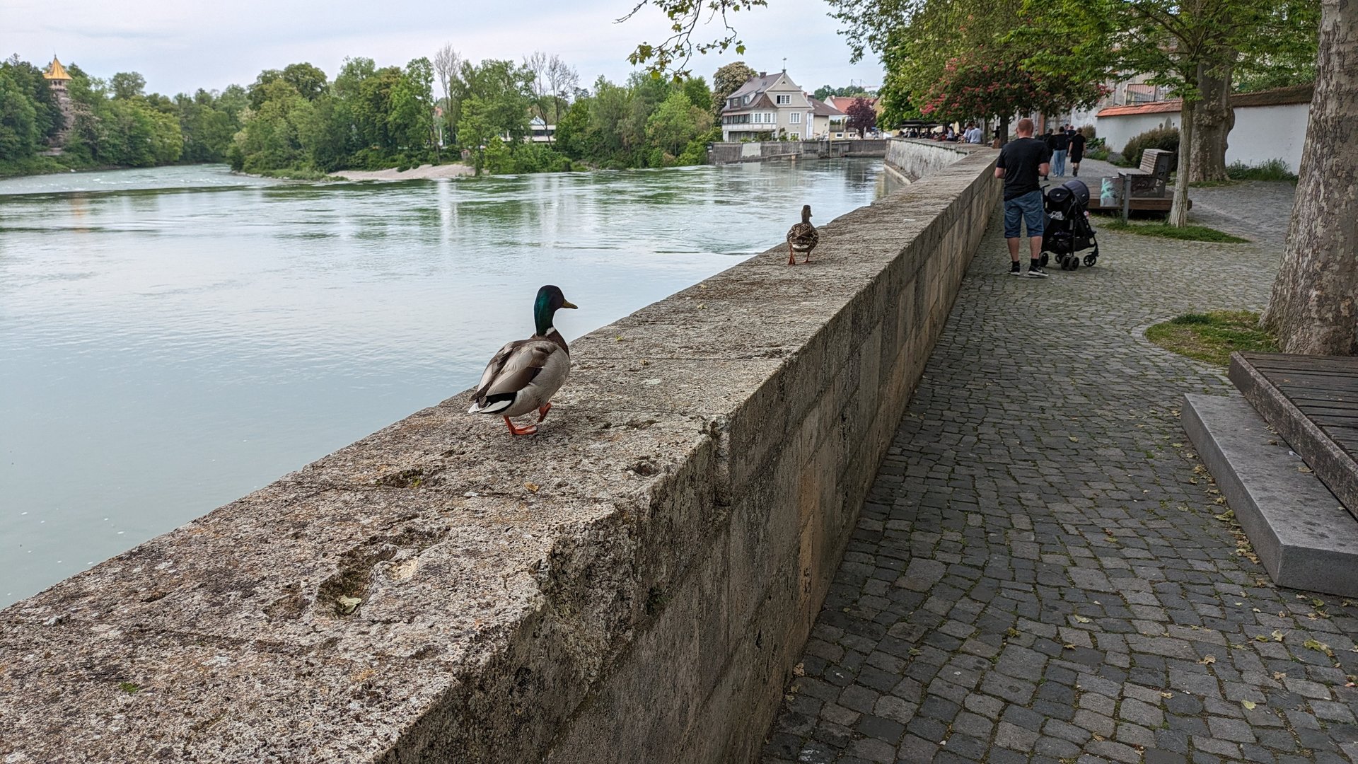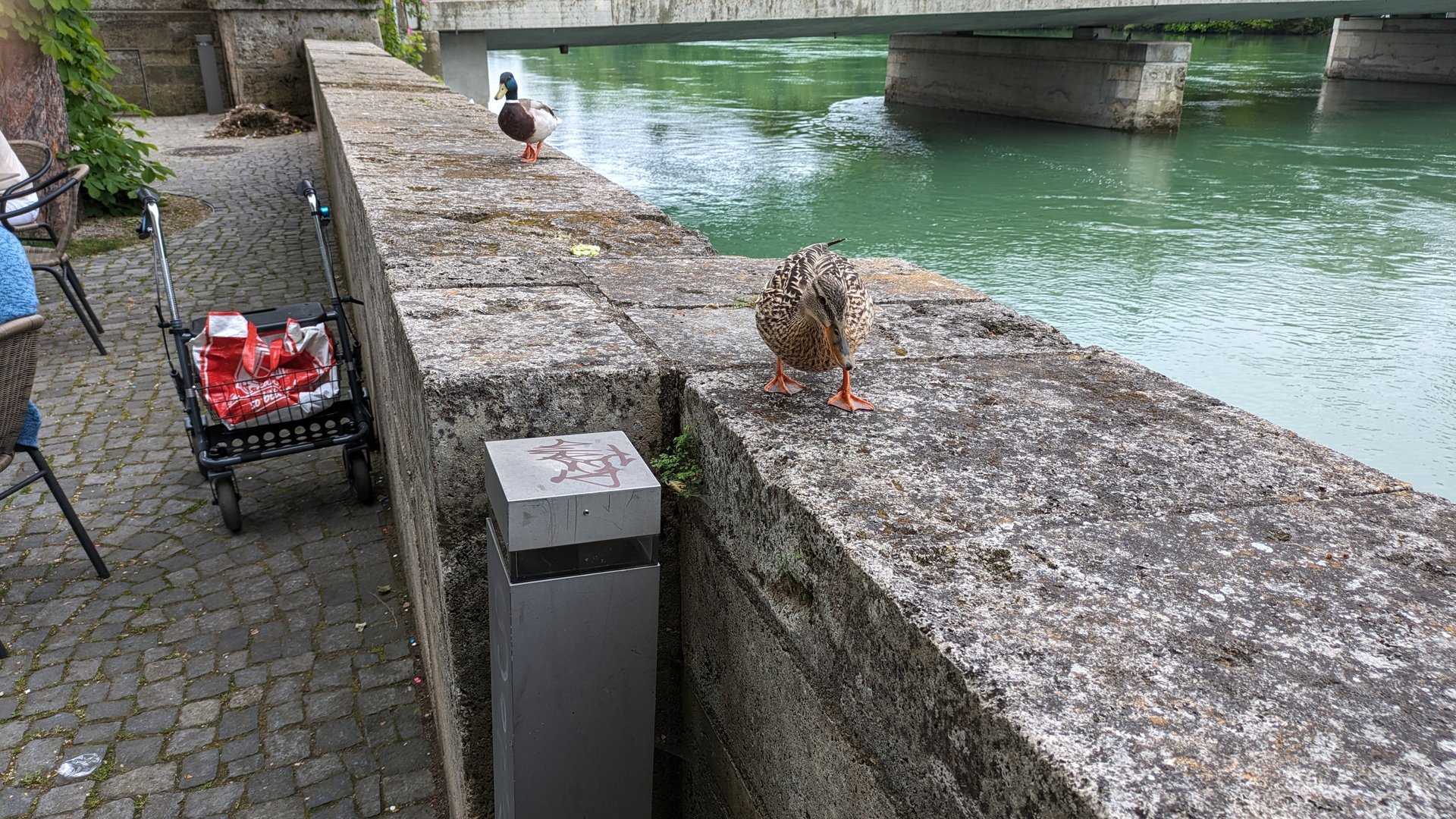 Diese beiden Enten kamen vom Fluß her auf die Mauer geflogen (geht etwa 4-5m hoch)