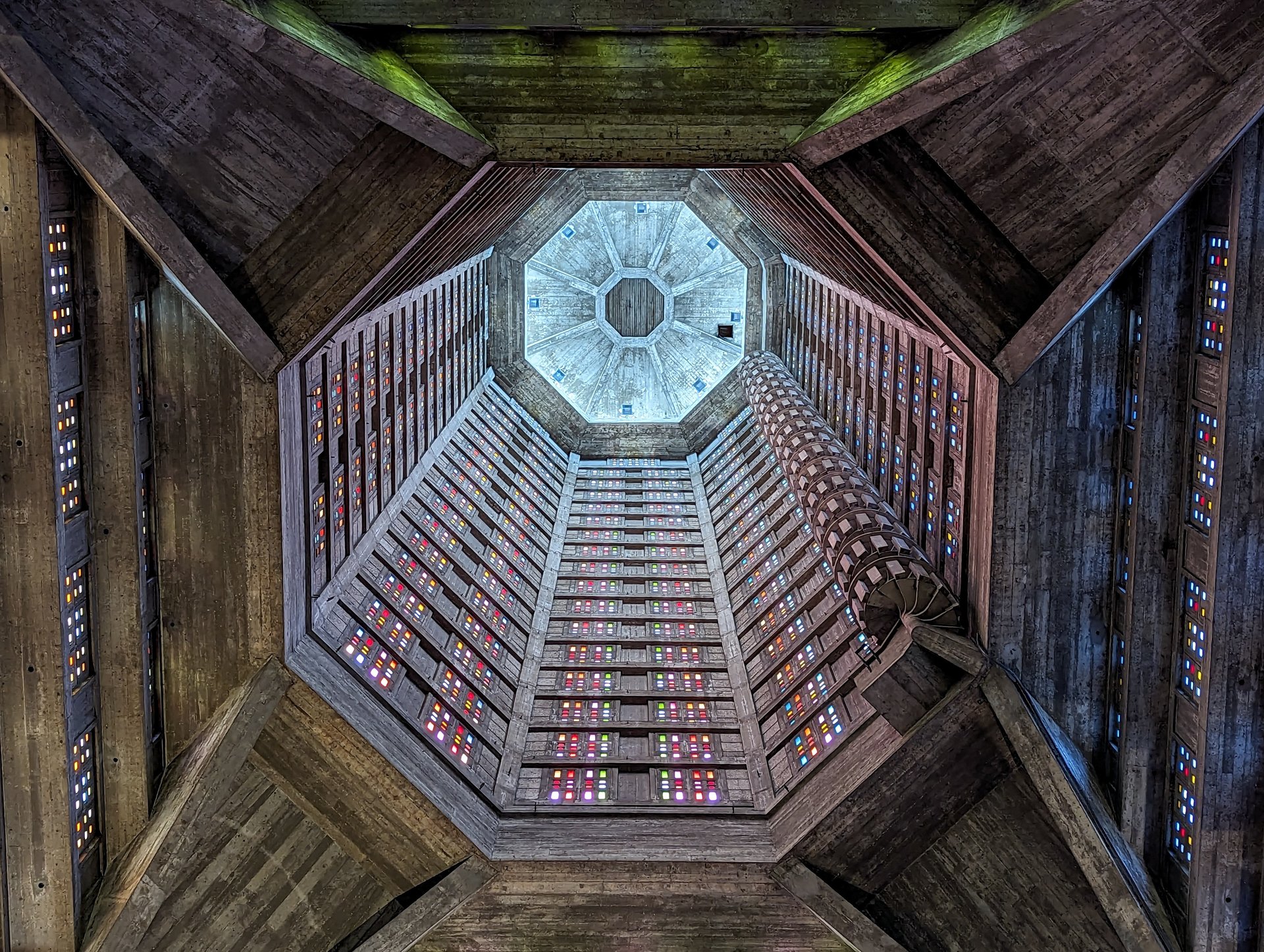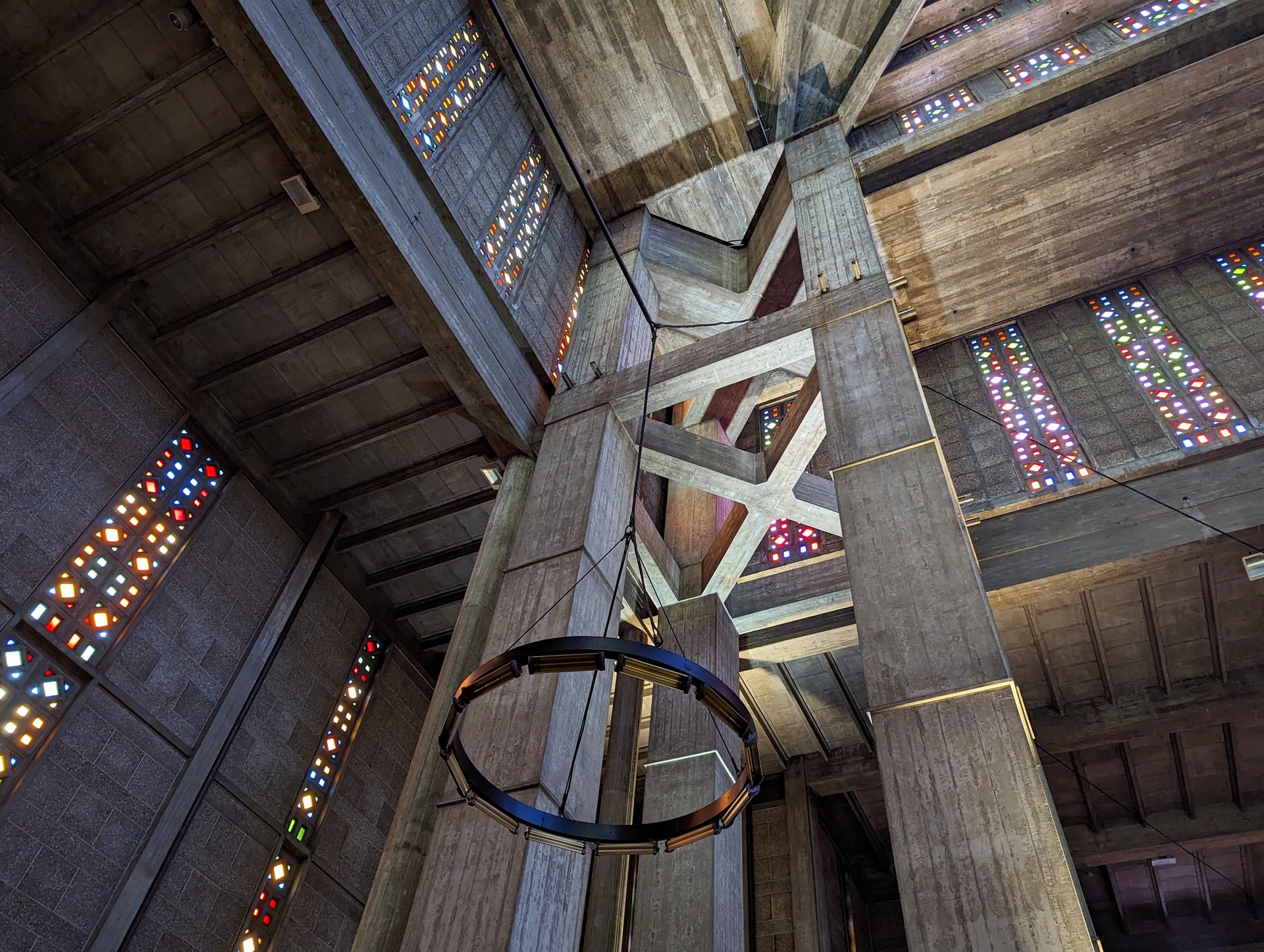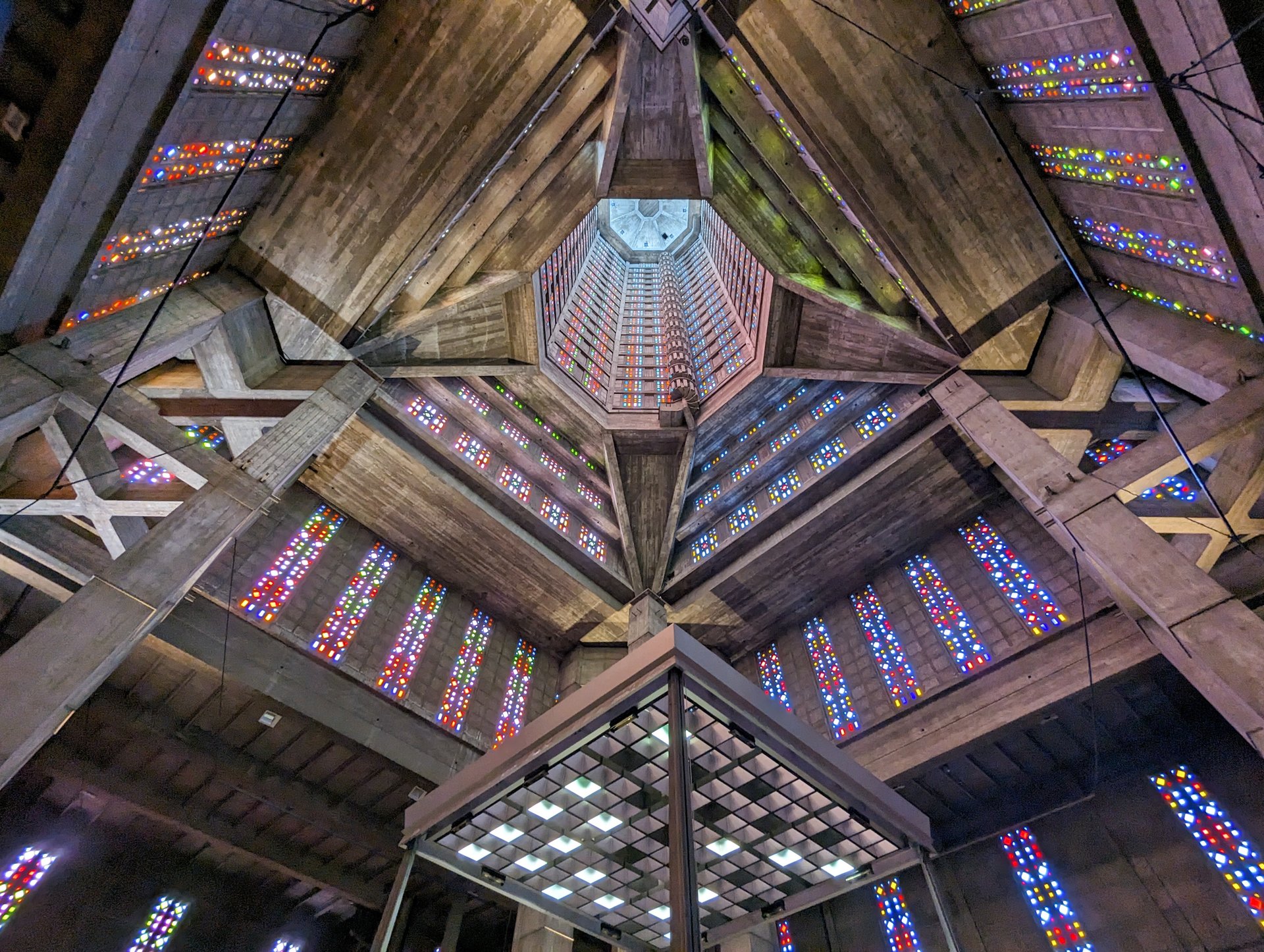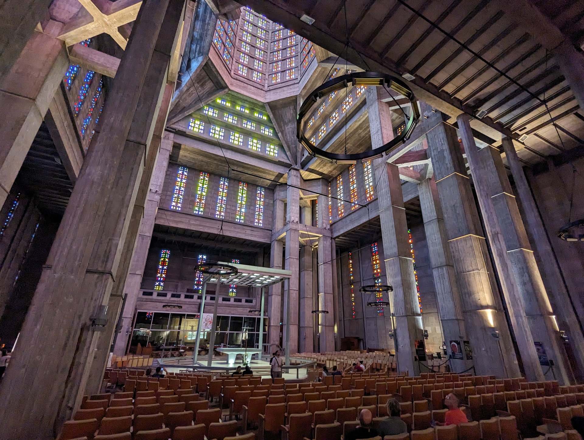 Zum Thema "Brutalismus" fällt mir die Kirche St. Joseph in Le Havre wieder ein, die wir 2013 im Urlaub besucht haben. Schwer vorzustellen, aber die Atmosphäre da drin war kein bisschen -wie man vermuten könnte- kalt oder abweisend, sondern genau das Gegenteil
