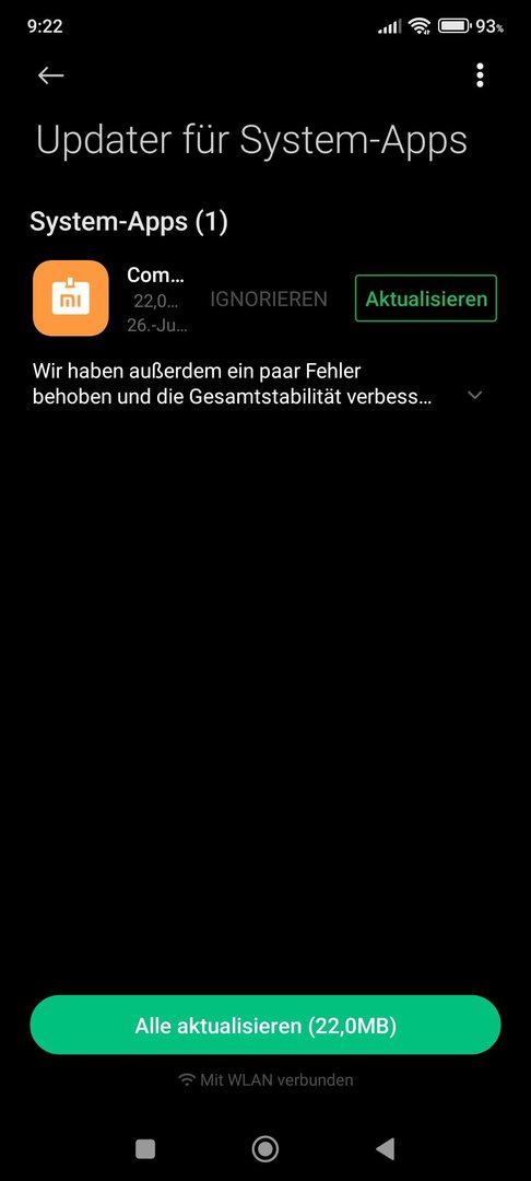 Heute Morgen musste ich feststellen, dass der Updater für die System-Apps fest hängt. Siehe Screenshot. Auch längeres Warten oder ein Neustart hilft nicht. Server-Probleme bei Xiaomi? Funktioniert es bei euch?