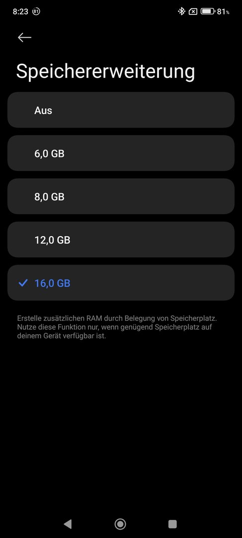 Nach heutigem Update auf HyperOS 2 habe ich bemerkt, dass die Speichererweiterung des RAMs nun bis zu zusätzlichen 16 GB möglich ist. Unter HyperOS 1 waren es nur bis zu 8 GB.
