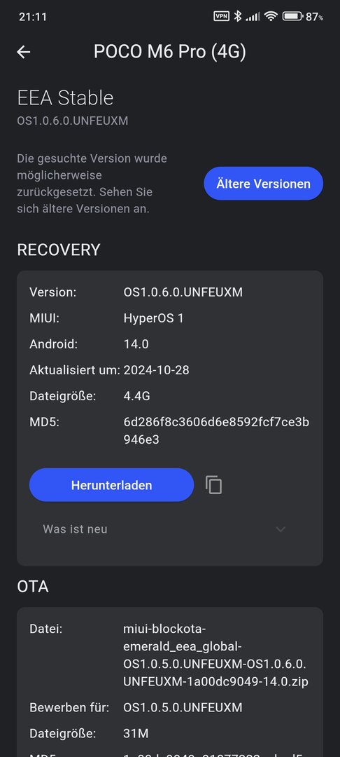 Ja, die habe ich gefunden und herunter geladen. Dazu noch OTA und Fastboot zum Recovery.