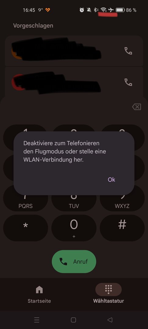 Gute Idee, das mit dem Flugmodus. Ich habe es getestet, aber es funktioniert leider nicht: