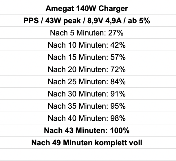 Ich habe z.B ein Xiaomi 65W Gan Charger und ein Xiaomi 120W Ladegerät. Beide laden das Handy (Realme GT7 Pro) leider ziemlich lahm auf, wobei das 120W Netzteil etwas schneller ist als das 65W Netzteil.