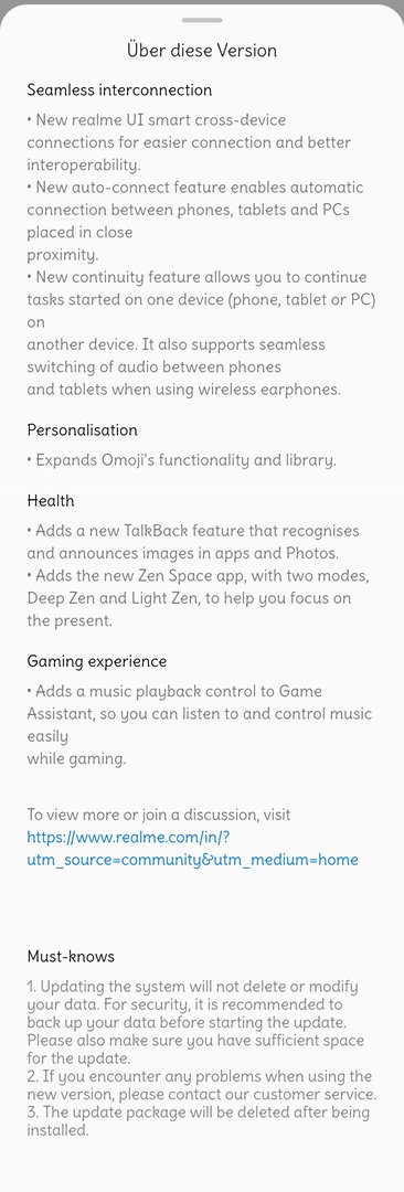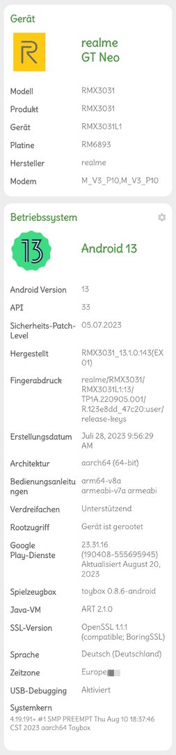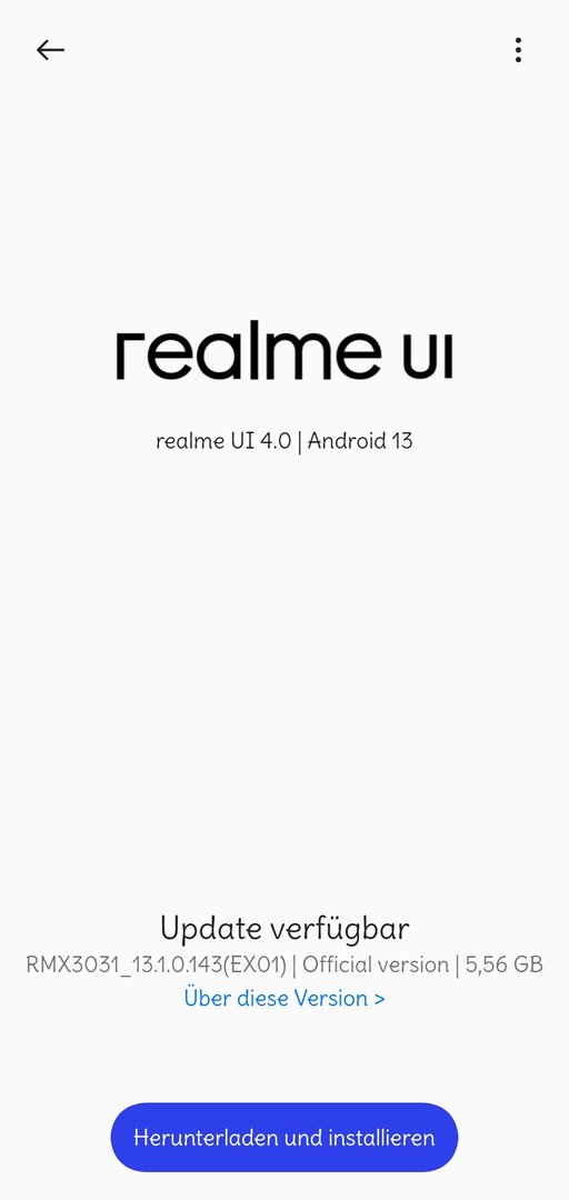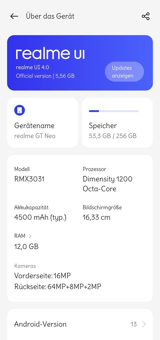 Das RMX3031_11_F.21 "RMX3031_13.1.0.143(EX01)" Update, bringt den Wechsel von ColorOS 13.0 auf ColorOS 13.1 für das Realme GT Neo.