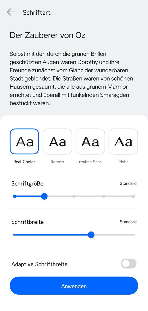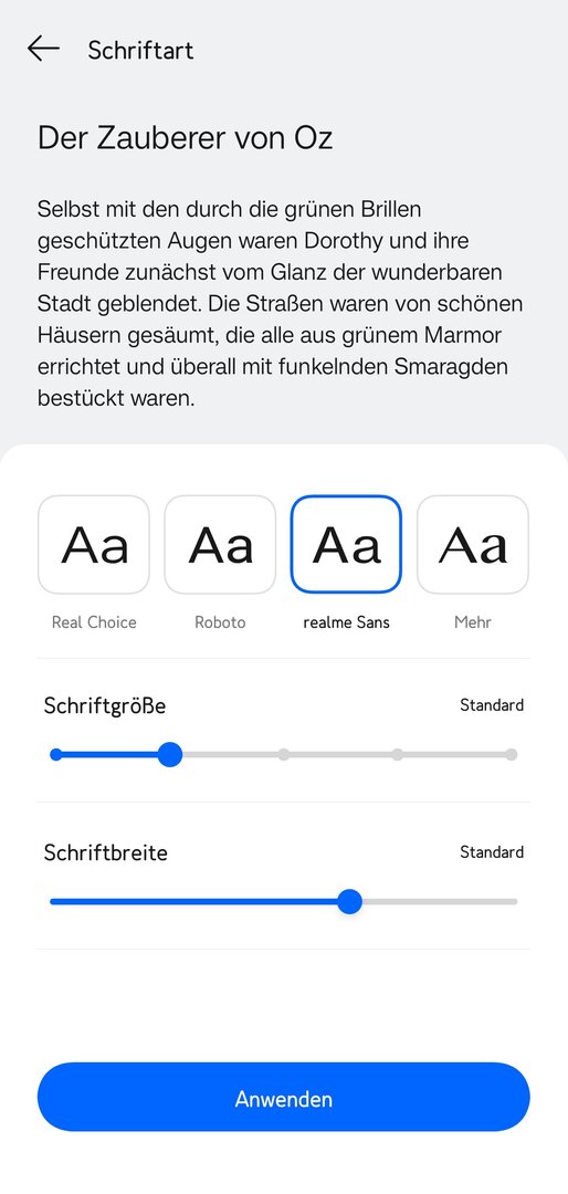 Die Schriftarten realme Sans und Real Choice wurden in weiteren Sprachen hinzugefügt.