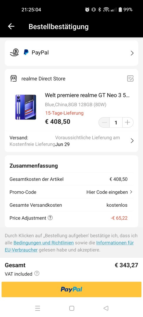 343€ (8/128GB/80W) inkl. aller Zollkosten, 15 Tage Express Lieferung aus China in Realme Store auf AliExpress.