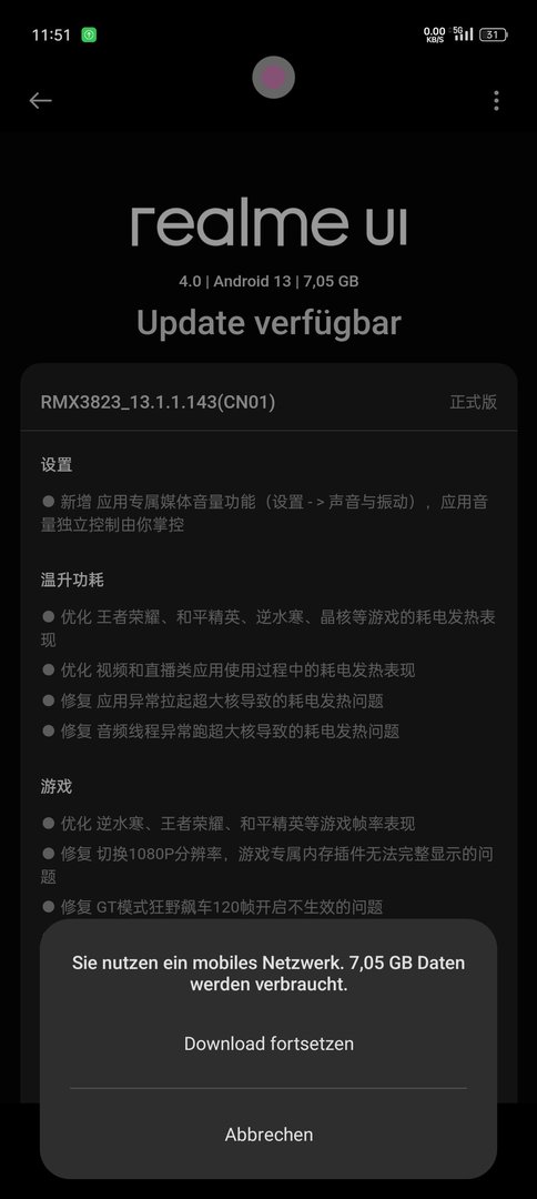 Die RMX3820_11_A.43 "RMX3820_13.1.1.143(CN01)" für das 150W GT5 sowie die RMX3823_11_A.43 "RMX3823_13.1.1.143(CN01)" für das 240W GT5.