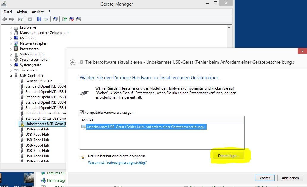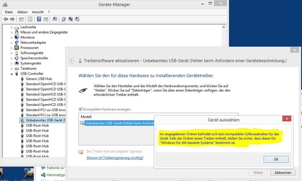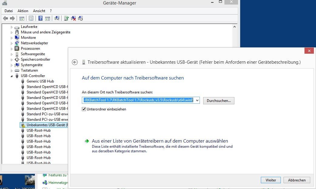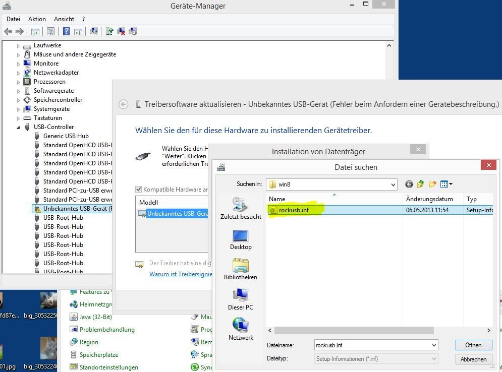 Ich kann unter Win8.1 die Rockchiptreiber nicht mehr installieren.