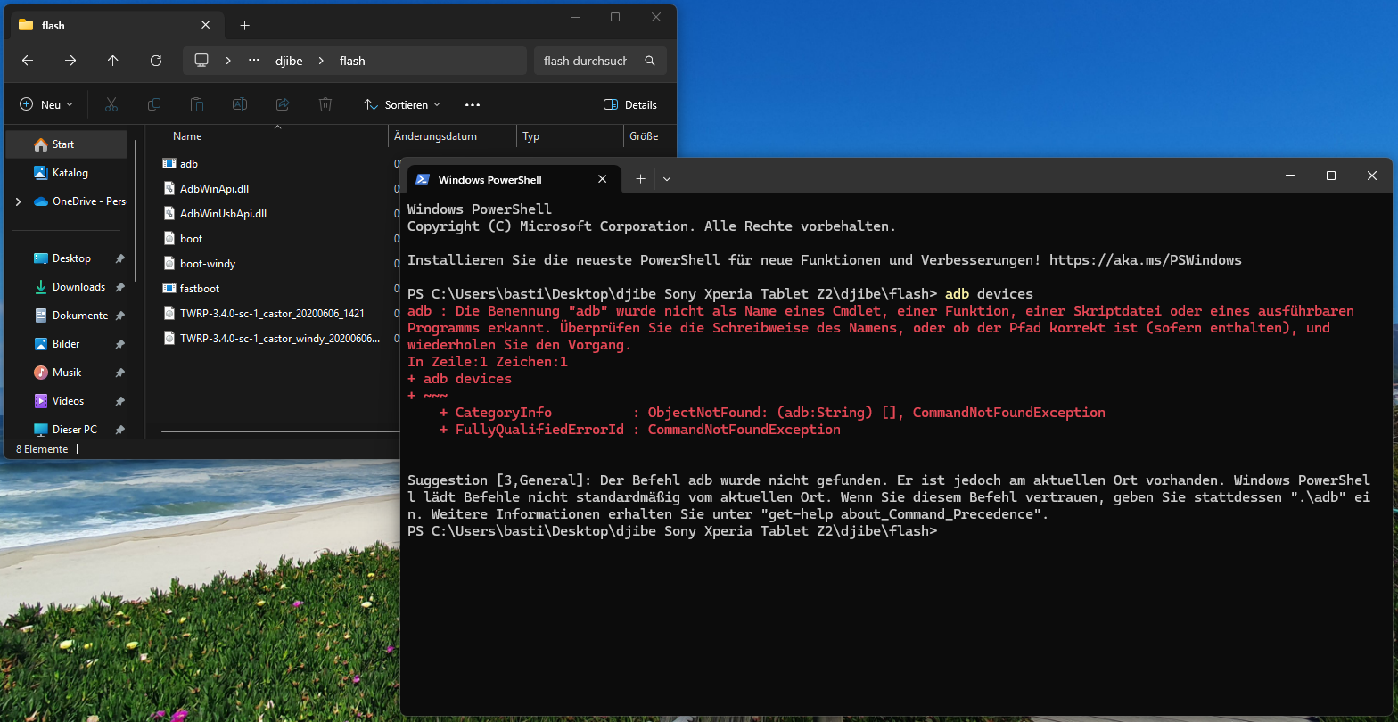 Wenn ich in der Konsole den Befehl "adb devices" eingebe erhalte ich nur die Fehlermeldung "Der Befehl "adb" ist entweder falsch geschrieben oder