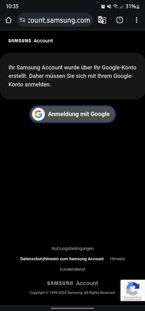 Somit komme ich auch nicht in meinen Samsung Account mit Gmail Adresse rein.