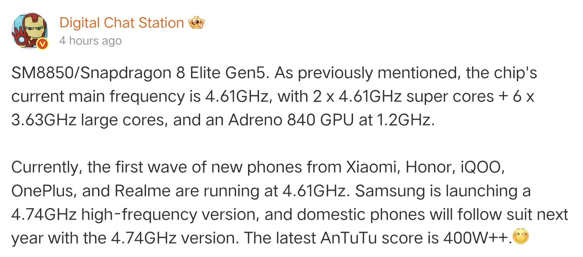 @superpotjera hab das übersehen, der neue Snapdragon heißt SD 8 Elite Gen 5