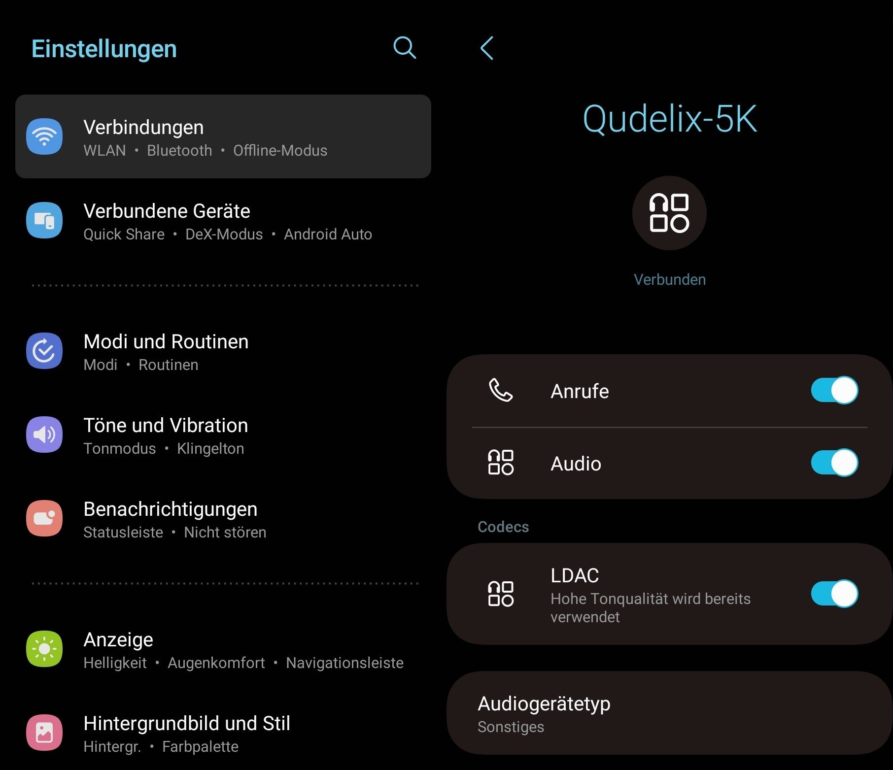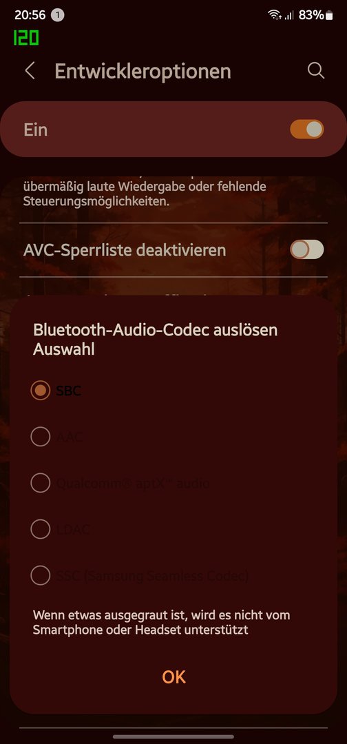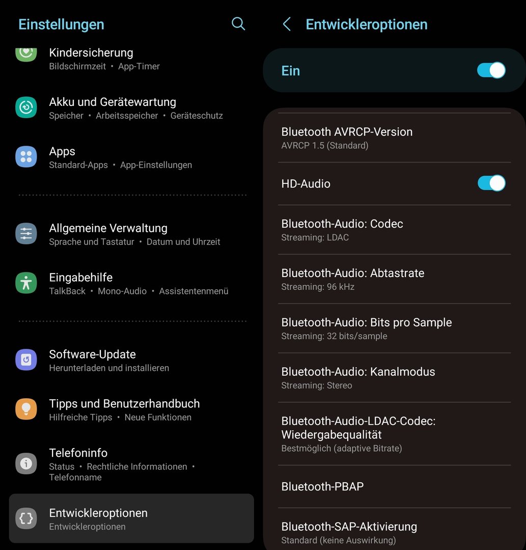 Ich hab das Galaxy S9 mit Android 10 und diverse soundcore Kopfhörer mit ldac und eine Sony Bluetooth Box, auch mit ldac, welches auch aktiviert ist. Wenn ich in den Entwickleroptionen vom Handy den ldac Code einstelle, springt er sofort wieder um auf aac oder sbc. Warum? Handy und Kopfhörer können ldac und bei deezer liegt alles in flac vor. Bei dem Samsung A51 von meiner Frau ist es auch so und bei meinem alten S7 auch. Ich verstehe das nicht.