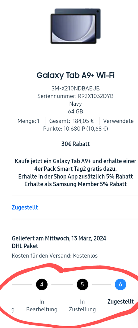Vielleicht hatte schon jemand etwas ähnliches. Ich hatte vor einiger Zeit mein Galaxy Tab retourniert und sollte ein Umtauschgerät bekommen. Das zurückgeschickte Tab ist auch bei Samsung angekommen und das wurde auch unter dieser Bestellung bei Retoure Status angezeigt, dass sie das Gerät erhalten haben. Das Umtauschgerät wurde aber noch nicht versendet und stand die ganze Zeit auf "in Vorbereitung".