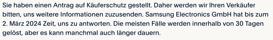 Um auch mal positive Nachrichten zu posten: Meine Rückzahlung von Samsung für das S24 war binnen 5 Tagen erledigt.