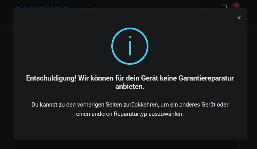 ich besitze eine S21 FE, bei dem sich der Akku aufgebläht hat. Daher möchte ich es bei nächster Gelegenheite zur Reparatur geben. Im Kundendienst wurde ich auf die Seite Samsung Smart Repair Service - Reparatur von Samsung Smartphones und Tablets verwiesen. Dort habe ich meine Modelldaten eingegeben aber komme dann immer nicht weiter, da ich die Meldung "Wir können keine Garantiereparatur für dieses Gerät anbieten". Gibt es noch eine andere Möglichkeit? Ich drehe mich etwas im Kreis.