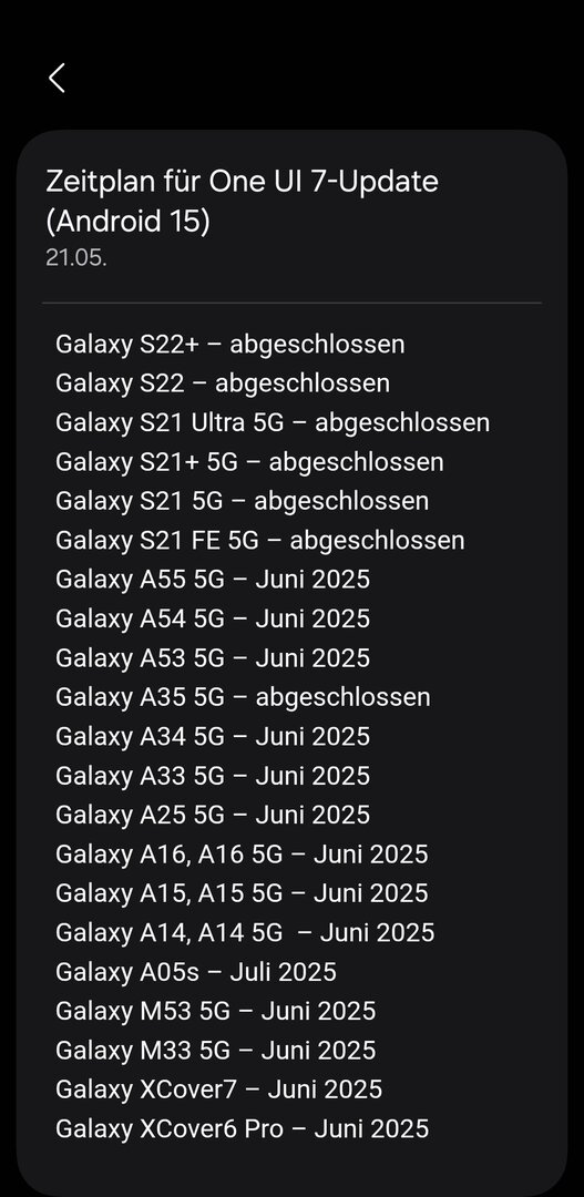 Warum ist es nicht in aktuellen Update Zeitplan von Samsung enthalten?