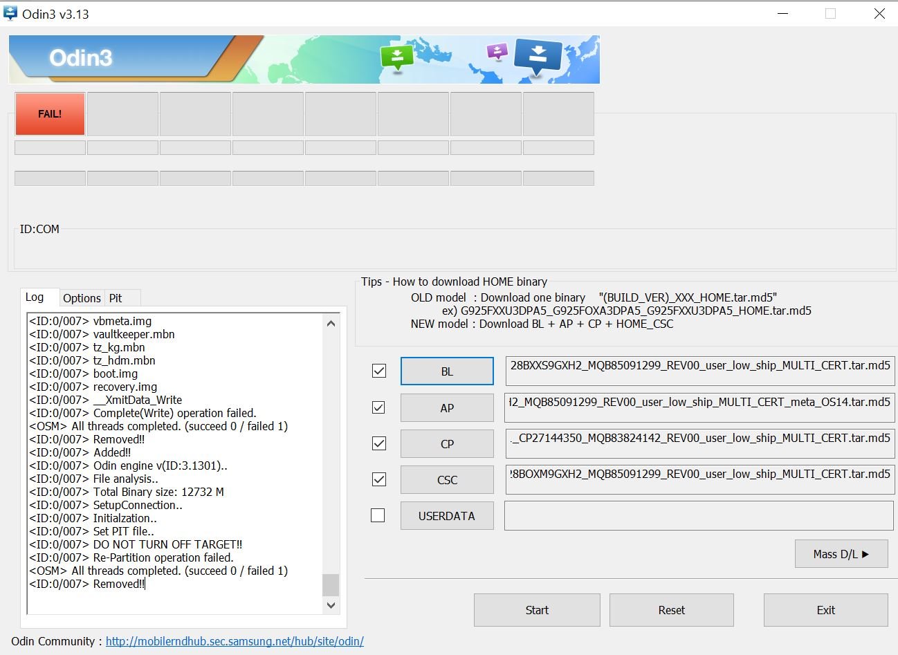 Ich gebe es jetzt auf .... ich habe 5 oder 6 verschiedene Kabel getestet, immer das gleiche. Einmal ging es noch ein File weiter bis zu "<ID:0/007> __XmitData_Write", dann beim darauffolgenden Versuch ist er schon ganz für gescheitert "<ID:0/007> Re-Partition operation failed." und seit dem ist das Gerät komplett tot. Komme nicht mehr in den Download Modus und anschalten oder ähnliches geht auch nicht mehr