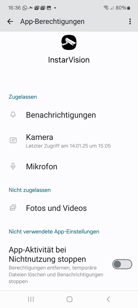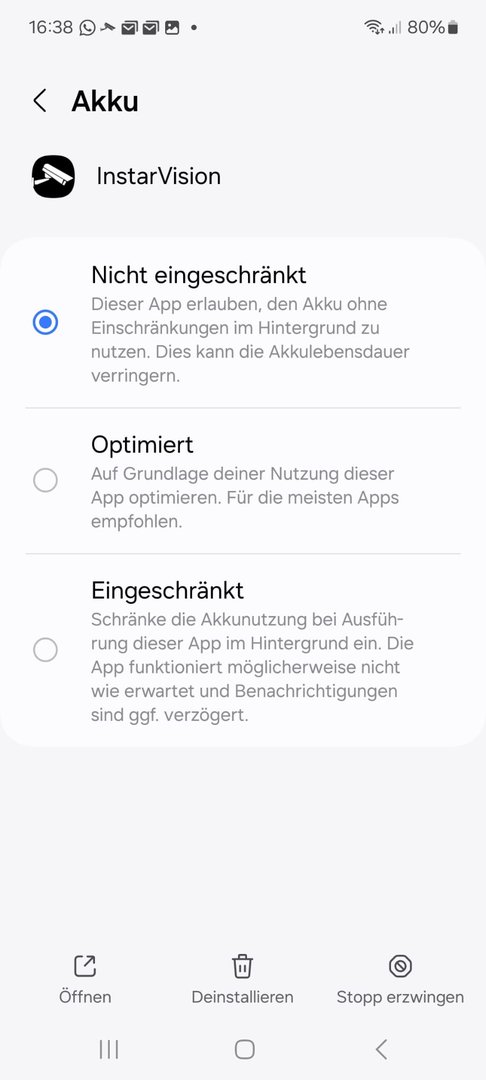 Es geht um folgende Konfiguration, A53 mit Android 14, z.B. eine Kamerasoftware App von Instar für Kamerameldungen. Seit vielen Jahren funktionierte alles ohne Probleme auf verschiedenen Handys, und immer mit Push Benachrichtigungen Tag und Nacht.
