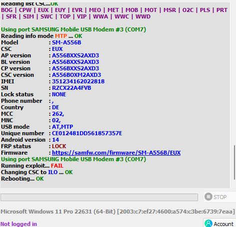 Moin mir ist aufgefallen das man beim A55 5G nicht mehr so problem mittels dem tool smFw die csc ändern kann