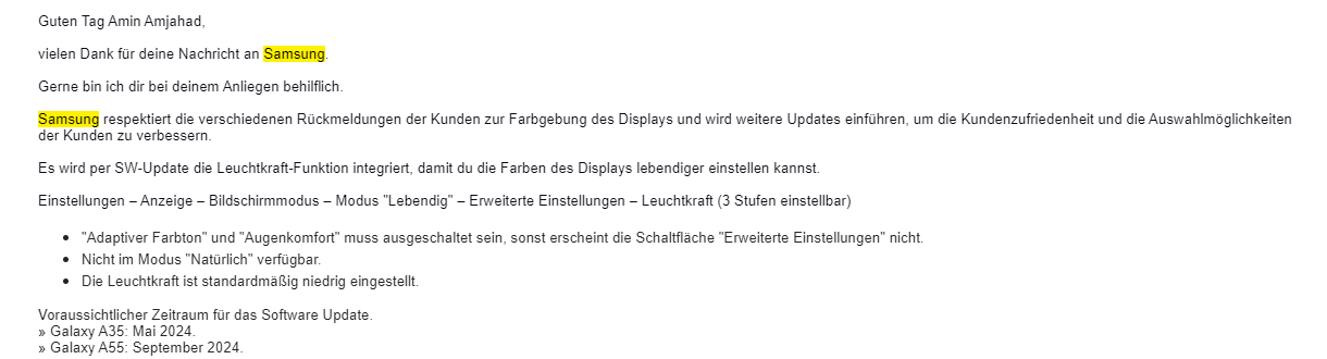 melde mich nur, wenn es neue Sicherheitsupdates fürs A55 5G und frag dann den Leuchtkraftregler an, ob dieser es endlich ins A55 5G geschafft hat