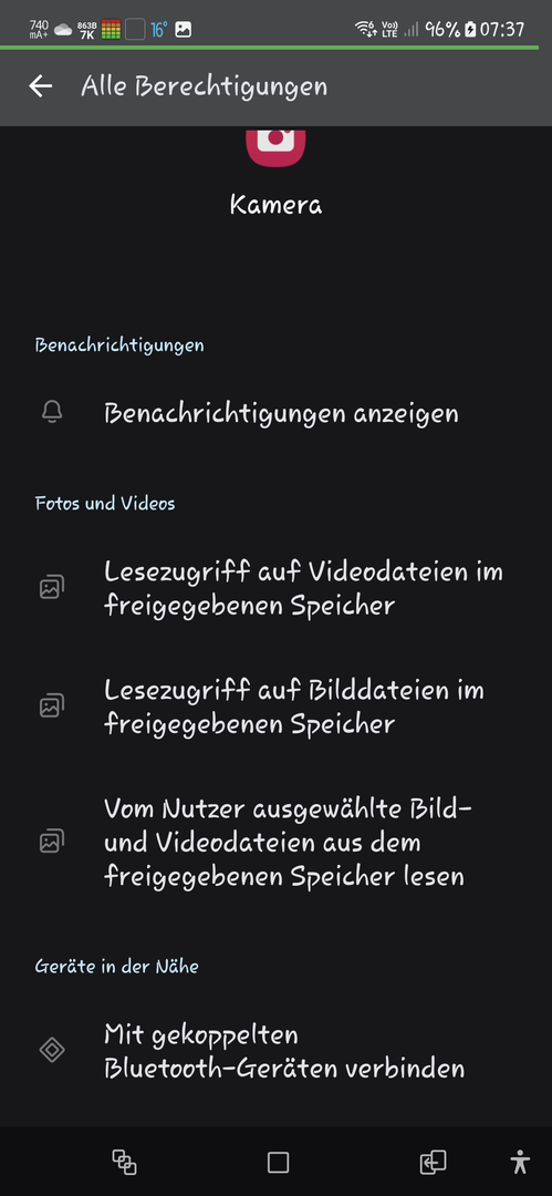 Ich hatte bei allen Apps "Geräte in der Nähe" ausgeschaltet, aber die Kamera funktioniert ohne Berechtigung nicht.