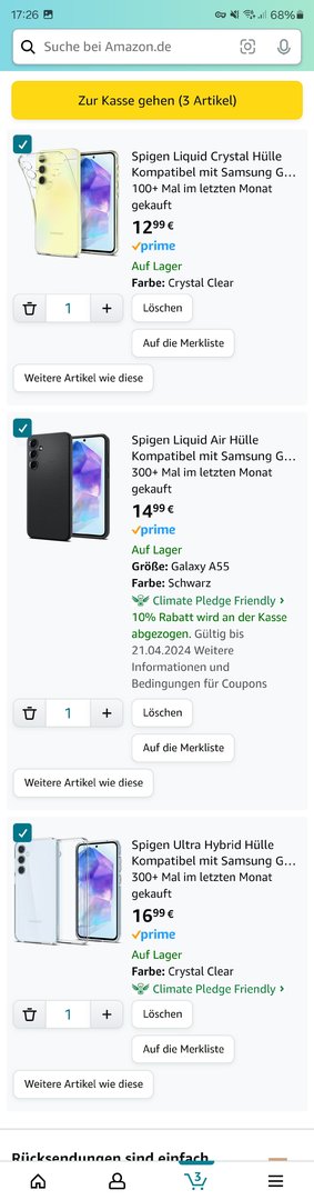 Danke! Ich habe das gleiche Modell gekauft (anderer Verkäufer, anderer Markenname, gleiches Foto, aktuell 4,69 EUR) und bin wirklich überrascht, wie gut die Hülle ist. Sie trägt ein wenig auf, aber der Schutz und die Haptik sind super. Vor allem für den geringen Preis. Nichts ist scharf oder unbequem in der Hand.Rudex schrieb:Solange ich auf die Hülle von Samsung warte, habe ich mir für knapp unter 7 Euro diese Hülle gekauft: https://www.amazon.de/dp/B0CQP6B8HM