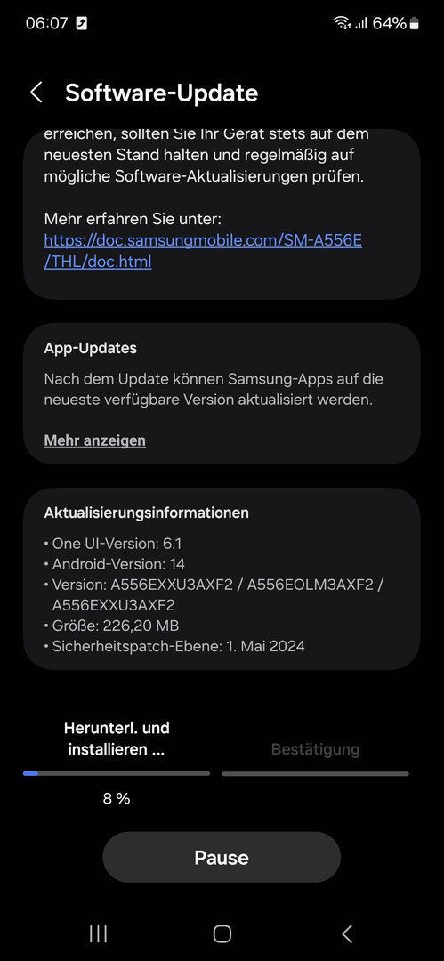 So langsam könnte Samsung aber mal ein Update freigegeben. Man wirbt ja mit monatlichen Sicherheitsupdates. In der Realität wird das A55 scheinbar recht stiefmütterlich behandelt.
