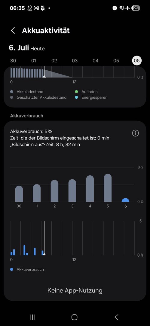Wie auf dem Screenshot zu sehen, wird keine App-Aktivität angezeigt.