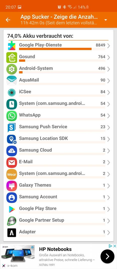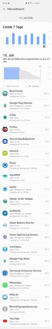 Irgendwie werde ich nicht von der integrierten Akku Verbrauchsanzeigen schlau und GSam zeigt sowieso was anderes an.