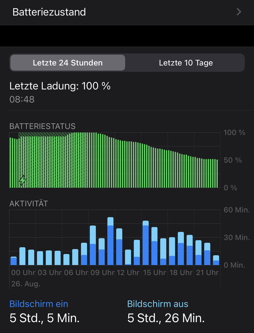 Nun bin ich bei 50% und habe eine SOT von 2 Stunden 53 Minuten.