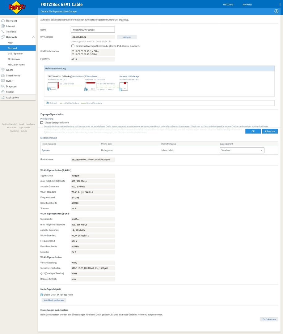 Das von dir angesprochene Phänomen hatte ich tatsächlich gestern, nach dem Update au 7.29, bei mir zu Hause mit einem 1200er Repeater - angebunden an eine 7490. Allerdings läuft die 7490 als AP und ist an meine 6591 gekoppelt.