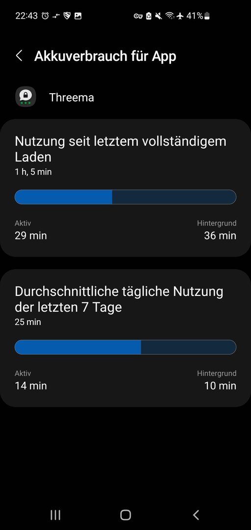 Bei einem anderen Messenger (Threema) ist der Hintergrundverbrauch deutlich geringer: