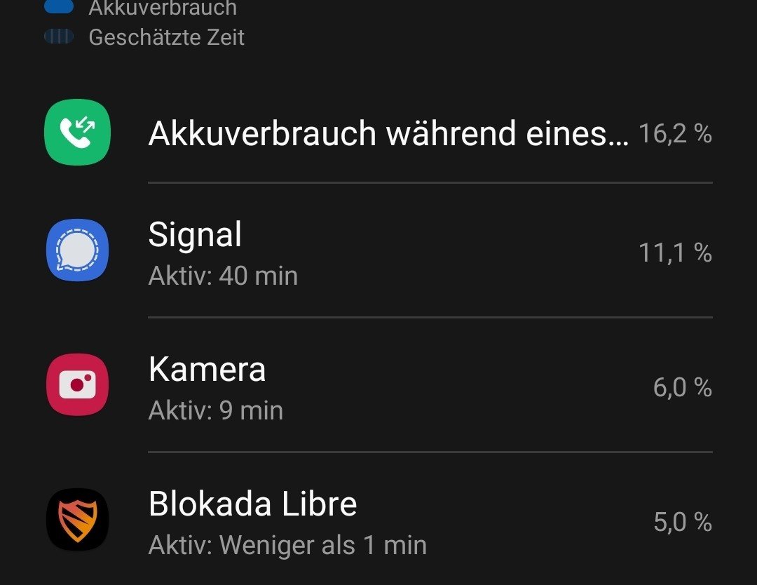 Signal taucht auch immer unter den größte Akku-Verbrauchern auf. Ist das ein Statistik-Fehler von A12? Bei einem Bekannten mit dem A52G ist der Hintergrundverbrauch vollkommen unauffällig bei Signal. Jemand einen ähnlich hohen Hintergrundverbrauch in Zusammenhang mit einem S10(e)/+?