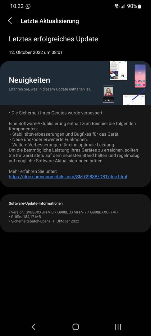 OK, also über den PC. Werde ich mir merken.Wenn Du Dir einen Gefallen tun willst, installiere das Update über SmartSwitch. Das hat den Vorteil, dass nicht nur das Delta sondern das komplette OS neu geschrieben werden.