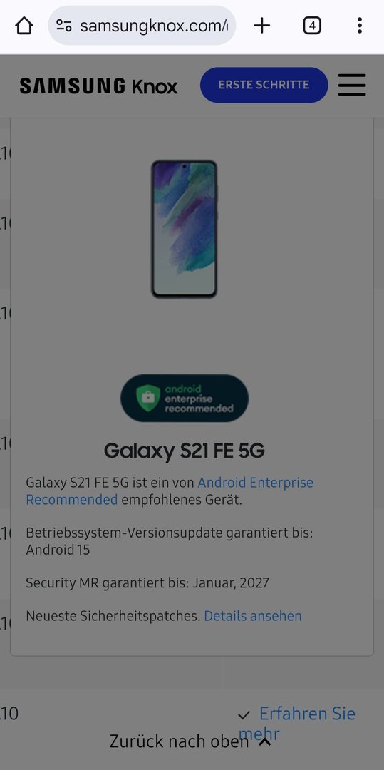 Hast du da vielleicht einen Link zu der Quelle?dwight schrieb:@OnkelLon Ok, Danke. Das ist aber nichts von Samsung. Auf der Samsung Knox Seite steht von Anfang an bis Android 15. Also ist nach Android 15 Schluss.