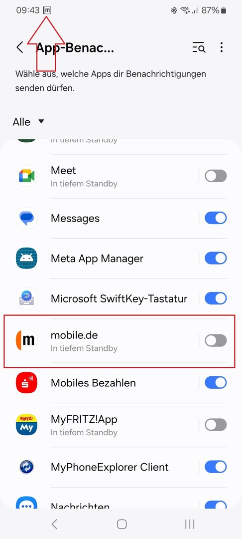 Auf meinem S21 Ultra bekomme ich Benachrichtigungen (Push-Meldung) obwohl die Apps im tiefen Standby sind und keine Berechtigung für Benachrichtigung haben.